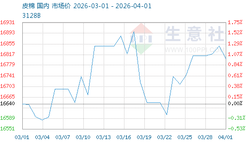 据生意社商品行情分析系统,截至4月1日3128B级皮棉现货价格在16802元/吨,环比上涨0.97%,较前一日下跌0.27%。