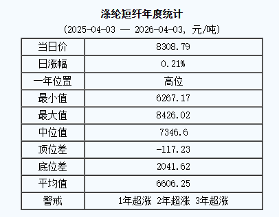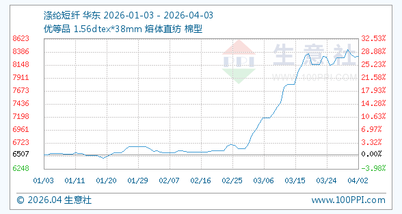 4月3日,生意社涤纶短纤基准价为8308.79元/吨,与本月初(8340.43元/吨)相比,下降了0.38%。